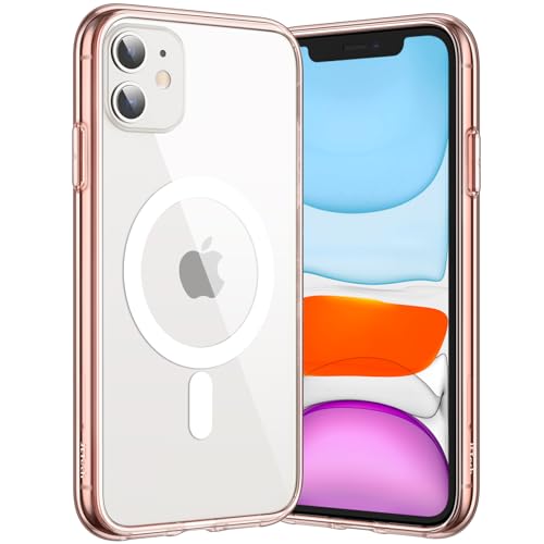 JETech Magnetisk Skal för iPhone 11 6,1 Tum för MagSafe Trådlös Laddning, Stötskyddad Telefon Bumper Case, Repfri Klar Tillbaka (Rosa Guld)