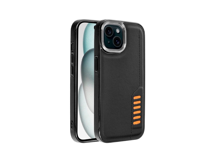 Cool Iphone 15 Milano Case, Black Leatherette/Raised Edges/Wireless Charging 8434847073170