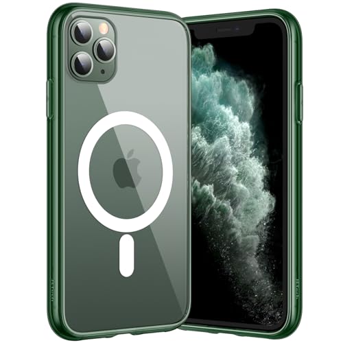 JETech Magnetisk Skal för iPhone 11 Pro Max 6,5 Tum för MagSafe Trådlös Laddning, Stötskyddad Telefon Bumper Case, Repfri Klar Tillbaka (Alpingrön)