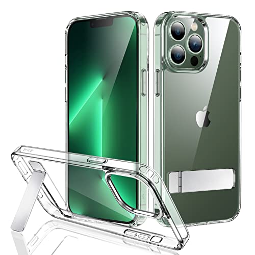 JETech Stativ Skal för iPhone 13 Pro Max, 6,7 Tum, Stöd Trådlös Charging, Smal Stötskyddad Bumper Telefon Case, 3-Vägs Stativ i Metall (Klar)