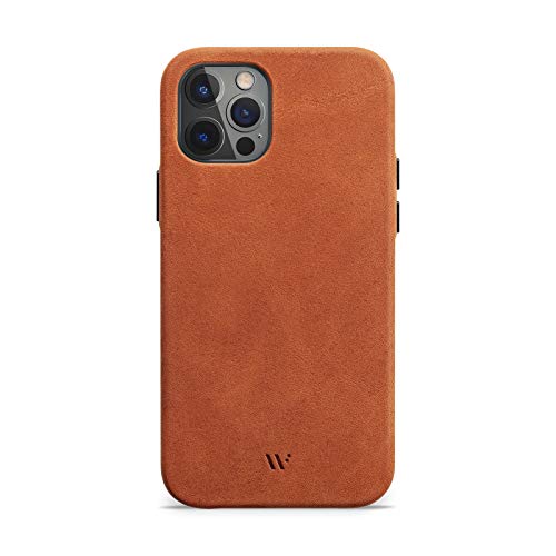 WIIUKA skal för iPhone 12/12 Pro, tyskt läder, läderskal extra tunn, premium mobilskal, skal, Qi, vintage brun