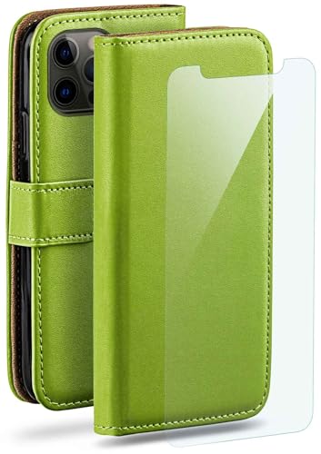 moex Mobiltelefonskal för Apple iPhone 12 Pro Max, fodral med [kortfack] [stativfunktion] [Premium PU-läder] skyddande skal, mobilskal, läderskal med skyddsfolie – grön