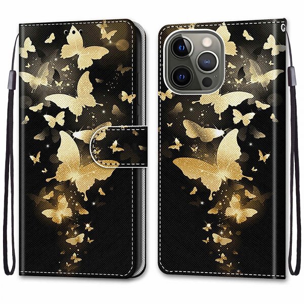 iPhone 13 Pro Fodral Motiv Guldiga Fjärilar