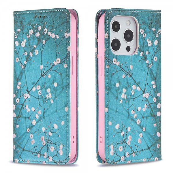 iPhone 13 Pro Fodral Flip Motiv Plommonblomster