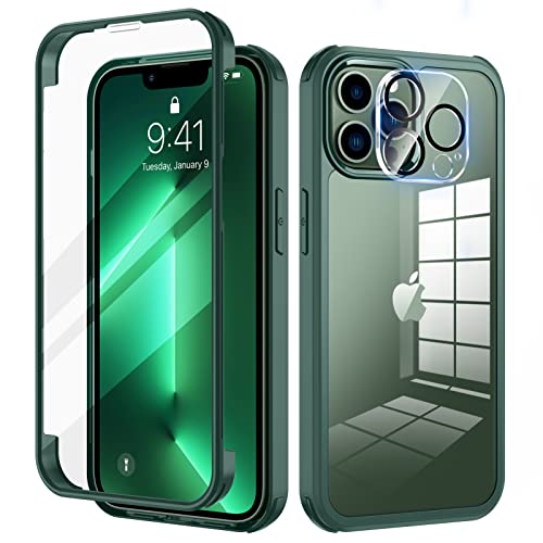 seacosmo för iPhone 13 Pro Max Mobilskal, [9H HD] Integrerat Skärmglas och Linsskydd, 360 Grader Stöttåligt Fodral, Stötdämpande Skal för iPhone 13 Pro Max, Grön