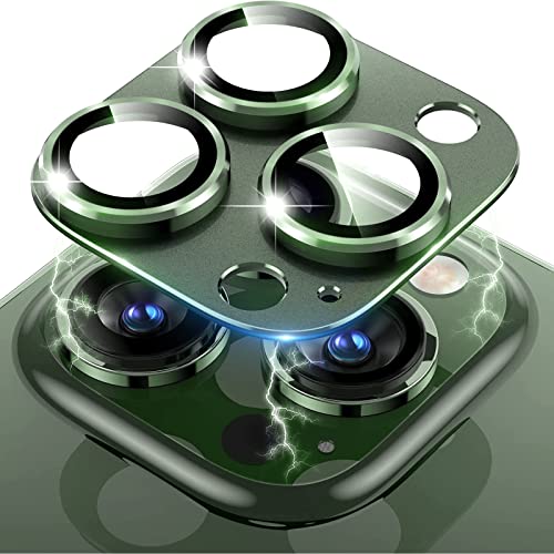 LanQii Bakre kameraskydd kompatibelt med iPhone 13 Pro/iPhone 13 Pro Max, metall härdat glas kamera skärmskydd legering aluminiumfilm för iPhone 13 Pro/iPhone 13 Pro Max - grön