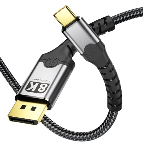 Vecbmn 2M Displayport 1.4 USB-C-kabel, dubbelriktad USB C till DisplayPort, stöd för 8K@60Hz 4K @ 240Hz, typ-C till DisplayPort-kabel för iPhone 16,15 Pro/Max MacBook Pro, Surface, iMac, XPS