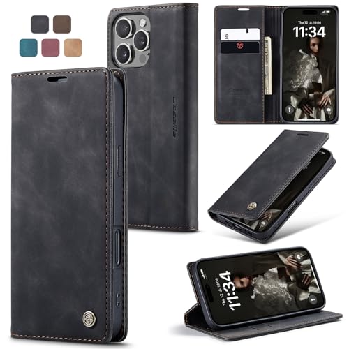 owlhold iPhone 16 Pro MAX Fodral, iPhone 16 Pro MAX Magnetiskt Flip-Plånboksfodral [Stötsäker] [Kickstand][Kortplats] Läderfodral för iPhone 16 Pro MAX-Svart