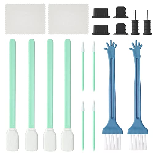 N//C 18 delar mobiltelefon rengöringsset, anti-damm plugg telefon damm plugg telefon port rengöringsborstar kit kompatibel med iPhone, Samsung Galaxy, IOS och Android
