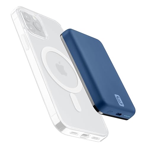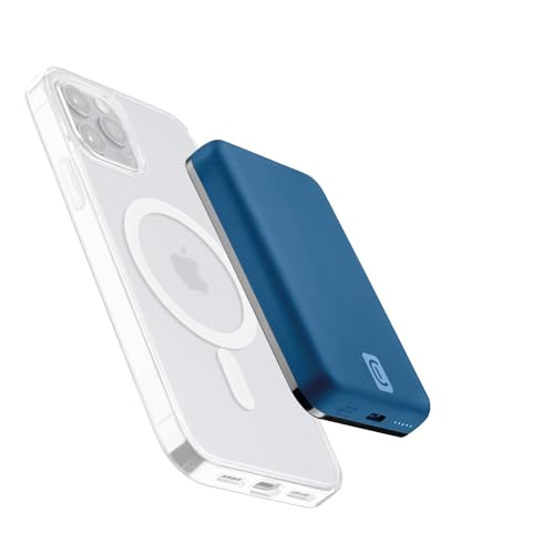 Cellularline | Wireless Power Bank MAG 5000 | bärbar laddare kompatibel med Mag Safe ekosystem - kapacitet 5 000 mAh - trådlös laddning 7,5 W - 1 x USB-C 18 W - för iPhone 12 och senare - Blå