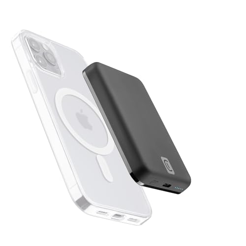 Cellularline | Trådlös powerbank MAG 5000 | Bärbar laddare kompatibel med Mag Safe Ecosystem – kapacitet 5 000 mAh – 7,5 W trådlös laddning – 1 x USB-C 18 W – för iPhone 12 och högre – svart