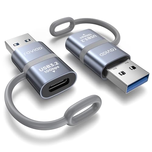 RAVIAD USB 3.0 till USB C-adapter (2 stycken) 10 Gbps USB C-uttag till USBA kontakt adapter OTG 18 W typ C till USBA adapter med anti-förlust rep för iPhone 16/15/14/13/12, MacBook, Samsung Galaxxy