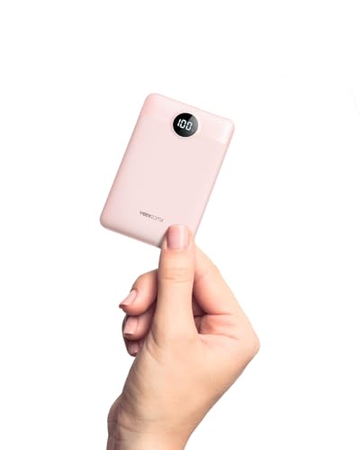 VEEKTOMX Mini Power Bank 10000mAh 22,5W bärbar laddare USB C PD QC 3.0 Snabbladdning Kompakt Externt Batteri med 2 utgångar och LED-display kompatibel iPhone 16 (PinK)