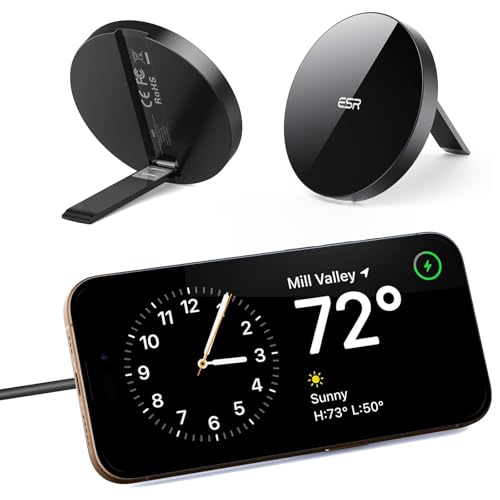 ESR Trådlös laddare till MagSafe-laddare, HaloLock, stativ, magnetisk laddare, kompatibel med MagSafe-stativ för iPhone 15/14/13/12-serien, med 1,5 m (5 fot) avtagbar kabel, adapter ingår inte, svart