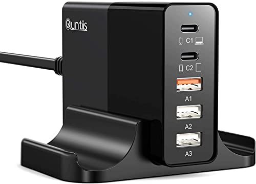 Quntis 65W Laddare Med Ställ, 5 Portar - USB-C PD-Port För MacBook, USB-C-Port För iPad Pro Och iPhone, Snabbladdningsadapter