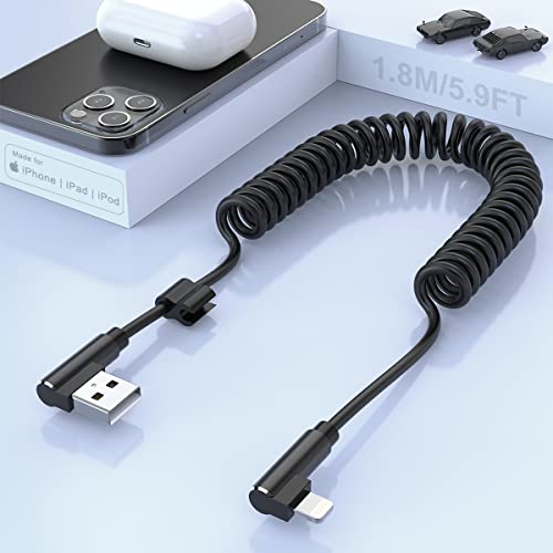 90 graders höger vinkel Apple Spiral laddningskabel [MFi-certifierad och kompatibel med bilspel] USB-kabel med rullad dataöverföring, för iPhone 14/13/12/11/SE/Xs/Xr/8/7 Plus