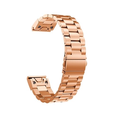 20 mm 22 mm 26 mm band i rostfritt stål for Garmin Fenix 8 7 Pro 7X 6 6X 5X 8X Plus Quick Fit Metal klockband(Rose gold,22mm)