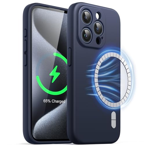 JETech Magnetisk Silikonskal för iPhone 15 Pro Max 6,7 Tums, Kompatibelt med MagSafe, Telefonfodral med Full Kameralinsskydd (Blå)