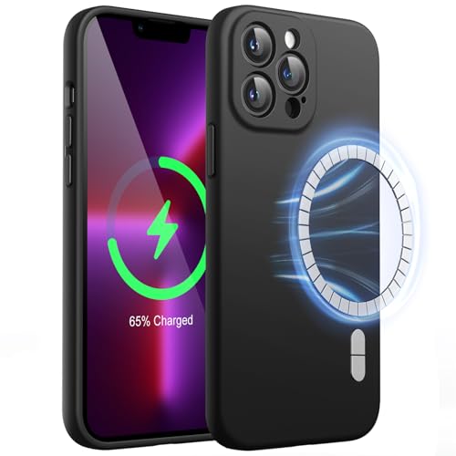 JETech Magnetisk Silikonskal för iPhone 13 Pro Max 6,7 Tums, Kompatibelt med MagSafe, Telefonfodral med Full Kameralinsskydd (Svart)