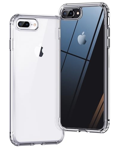 ONES iPhone 8 Plus / 7 Plus HD klart smalt hårt fodral『Stötsäkert skydd av militärklass luftkudde』 『Höjda kanter skyddar kamera』 [Icke-gul Halkfri] PC + TPU hybrid skyddande transparent silikonskal