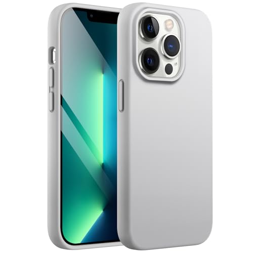 JETech Silikonskal för iPhone 13 Pro Max 6,7-Tums, Silky Soft Touch Skal med Hela Kroppen, Stötsäker Skal med Mikrofiberfoder (Ljust Grå)