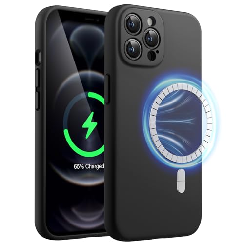 JETech Magnetisk Silikonskal för iPhone 12 Pro Max 6,7 Tums, Kompatibelt med MagSafe, Telefonfodral med Full Kameralinsskydd (Svart)