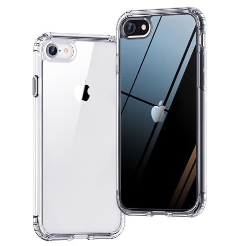 ONES iPhone SE3 SE2 SE 8 7 HD klart smalt hårt fodral『Stötsäkert skydd av militärklass luftkudde』 『Höjda kanter skyddar kamera』 [Icke-gul Halkfri] PC + TPU hybrid skyddande transparent silikonskal