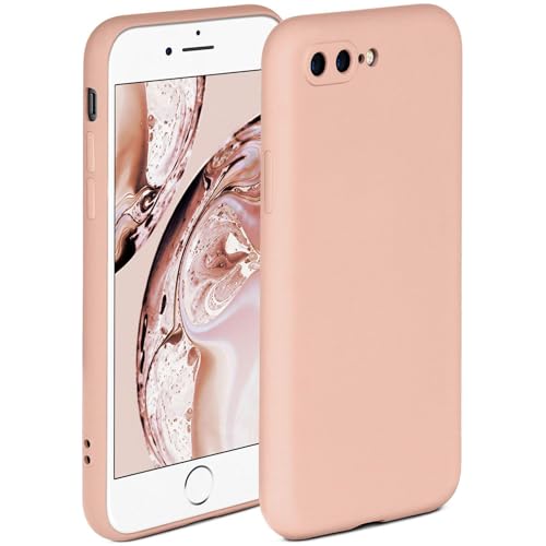 ONEFLOW Mjukt fodral kompatibelt med iPhone 7 Plus/iPhone 8 Plus, silikonskal, upphöjd kant för skärmskydd, två lager, mjukt mobiltelefonfodral – matt rosa