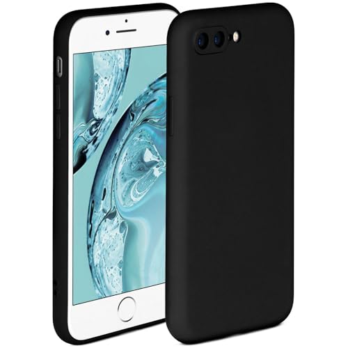 ONEFLOW Mjukt fodral kompatibelt med iPhone 7 Plus/iPhone 8 Plus, silikonskal, upphöjd kant för skärmskydd, två lager, mjukt mobiltelefonfodral – matt svart