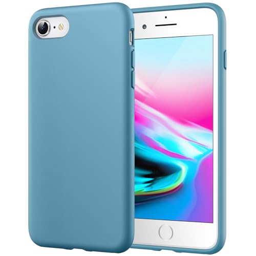 JETech Silikonskal för iPhone SE 3/2 (2022/2020-modell), iPhone 8 och iPhone 7 4,7 Tums, Silkesmjuk Beröringsskydd med Hela Kroppen, Stötsäkert Skal med Mikrofiberfoder (Blåklint)