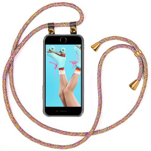moex Mobiltelefon kedja kompatibel med iPhone 7 Plus/iPhone 8 Plus – silikonskal med band – mobiltelefon fodral att hänga – fodral transparent med sladd – skyddande hölje med dragsko, utbytbar i Rainbow