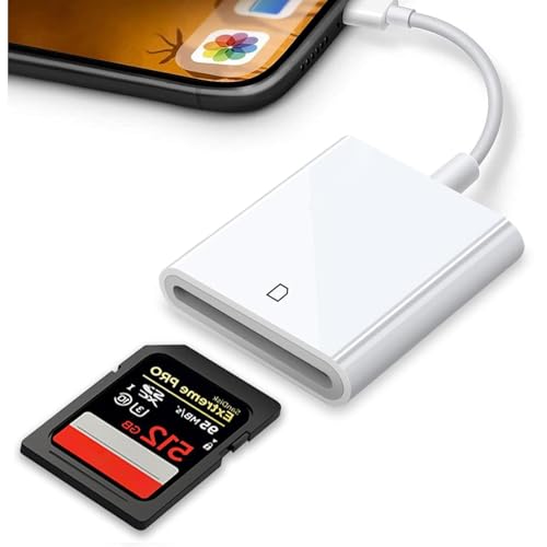 Lightn-ing SD-kortläsare för iPhone och iPad – Plug & Play fotoöverföring, kompatibel med iPhone 14/13/12/11/X/8 och iPad Pro/Air/Mini, extern minneskortläsare för kamera