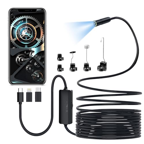 YSWOVUO endoskopkamera med ljus, 1920 HD typ-C endoskop 5 m med 8 LED-lampor, inspektionskamera vattentät Ip67, ingen WLAN endoskop kamera för Android och iOS smartphone, iPhone, iPad, Samsung