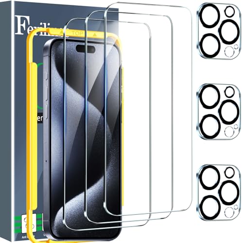 [8-i-1] Ferilinso skyddsfilm för iPhone 15 pro pansarskydd glas tillbehör 4 stycken pansarfolie skärmskydd 4 stycken kameraskydd fodral vänlig kamera glas skärmskydd skydd för iphone 15 pro tum