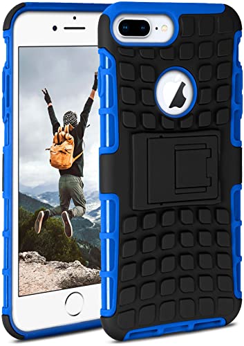 OneFlow Tankfodral, kompatibelt med iPhone 7 Plus/iPhone 8 Plus, utomhusfodral, stötsäker, telefonfodral med stativ, kamera och skärmskydd, mobiltelefon hårt fodral, horisont – blå