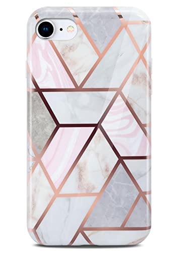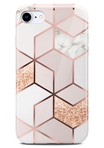 ONEFLOW Sense Case kompatibelt med iPhone 7/8/SE (2020/2022) fodral i marmorutseende, skydd för kamera och skärm, glitter mobiltelefonfodral av silikon – glänsande roséguld (devotion)