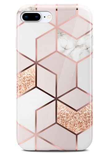 ONEFLOW Sense Case kompatibelt med iPhone 7 Plus/iPhone 8 Plus, fodral i marmorutseende, skydd för kamera och skärm, glitter mobiltelefonfodral av silikon – glänsande roséguld (devotion)