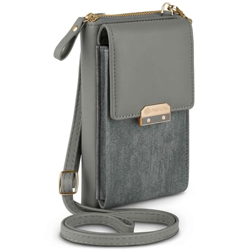 ONEFLOW Bliss plånbok för Apple iPhone 7/iPhone 8 mobilväska för upphängning, dam med plånbok, mobiltelefon, axelväska med plånbok och mobiltelefonfack, liten handväska, brungrå grå
