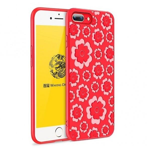 MSVII Flower Flexible Case Silikon TPU-skal för iPhone 8 / 7 Röd