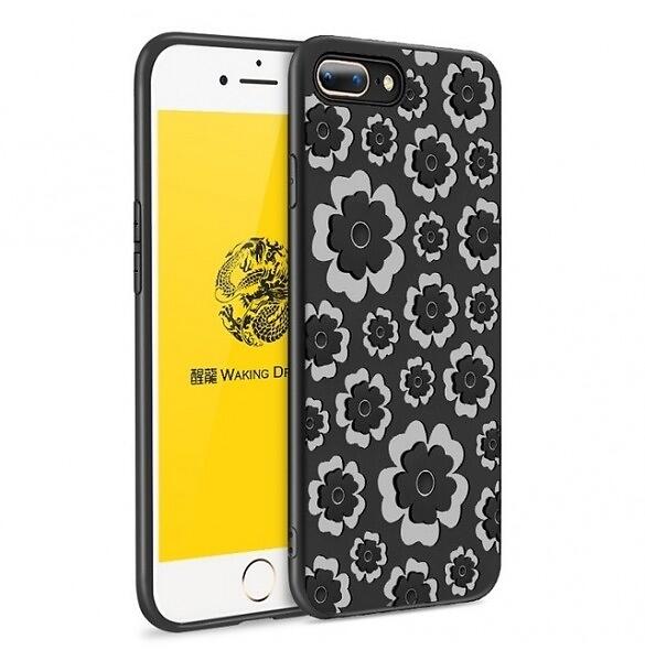 MSVII Flower Flexibelt fodral silikon TPU-skal för iPhone 8 / 7 Svart
