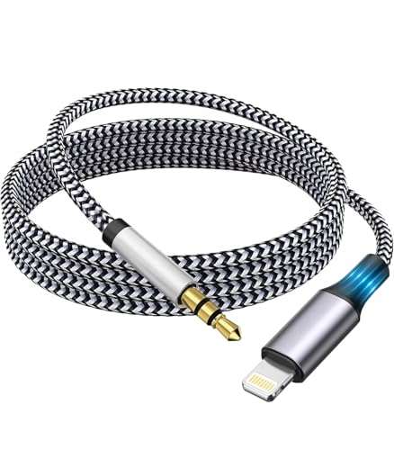 Apple MFi-certifierad Aux-kabel för iPhone, Lightning till 3,5 mm jack nylonflätad ljudkabel för iPhone 14 13 12 11 X 8 7 6, PC