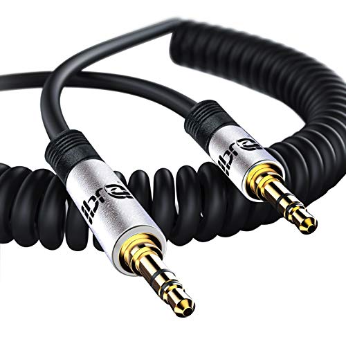Spiral Aux-kabel 0,5 m 3,5 mm stereo premium extra ljud lindad kabel – för Beats-hörlurar Apple iPod iPhone iPad Samsung LG smartphone MP3-spelare hem/bil etc – IBRA silver