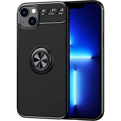 lopolike Fodral för iPhone 14, mjukt reptåligt stötsäkert TPU-skyddsfodral med metallringstativ [stöder magnetisk bilhållare] för Phone 14, svart
