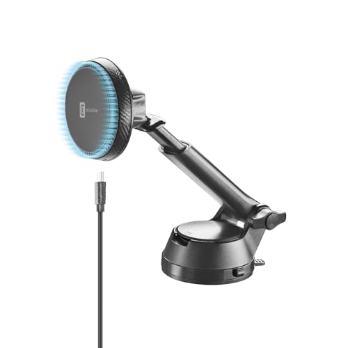 Cellularline Magsafe bilhållare – kylsystem – för iPhone från 12-serien – 7,5 W trådlös laddning – fastsättning på universella ventilationsöppningar, instrumentbräda eller glas – svart
