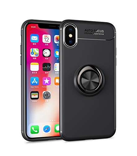 lopolike Fodral för iPhone XS, mjukt reptåligt stötsäkert TPU-skyddsfodral med metallringstativ [stöder magnetisk bilhållare] för Iphone Xs, svart/blå