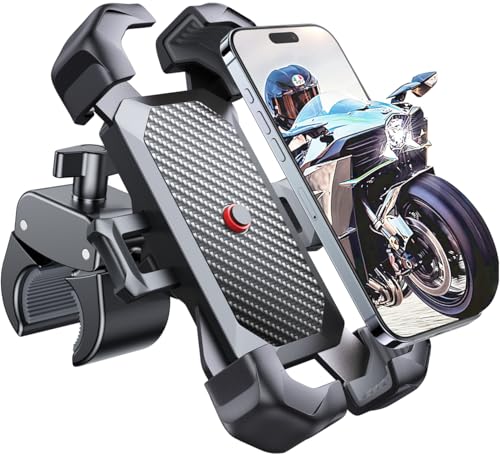 Bovemanx Mobiltelefonhållare motorcykel, [150 mph vind antivibrerad] [7,2 tum stor telefon vänlig] Cykel mobiltelefonhållare styre, [3s installera] Mobiltelefonhållare cykel, kompatibel med iPhone
