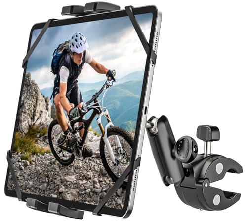 Motorcykel cykel surfplattehållare [stark stabilitet och hållbarhet] cykel båt barnvagn gym snurra cykel löpband surfplatta montering styre klämma för iPad Mini Air Pro, Galaxy Tab, Kindle, iPhone, 4