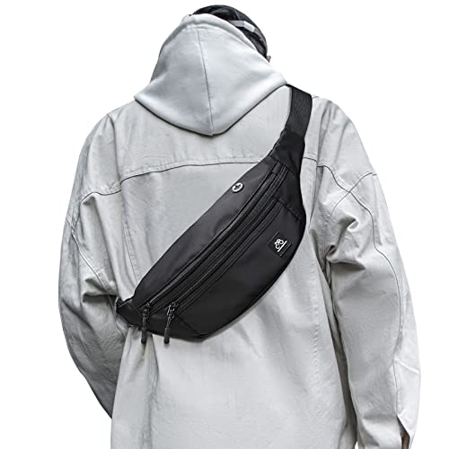 SZSYCN Large Fanny Pack Dam Midjeväska Mode Midjeväska Dam och Herrsport Svart Vattentät Bältesväska för Resa iPhone Arbetare Camping Vandring Fitness Cykel Jakt