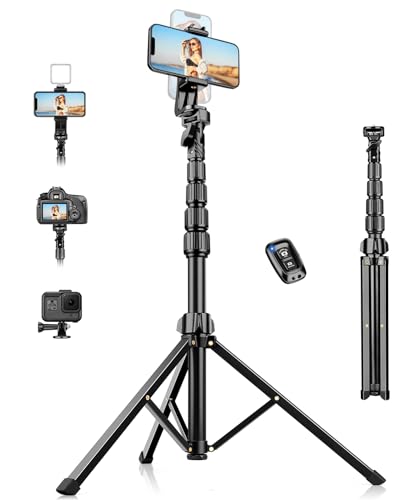 Pnitri 71 tum telefonstativ, utdragbart förstärkt aluminiumstativ med trådlös fjärrkontroll, stabil mobiltelefonstativ kompatibelt med iPhone 15/14/13 Galaxy S23/S22 Huawei.