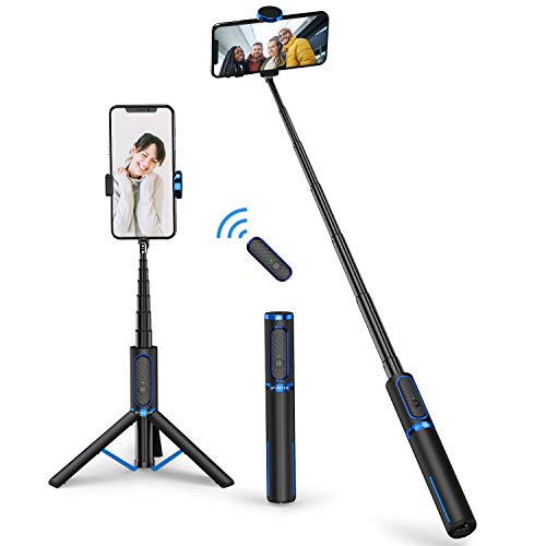 ATUMTEK Bluetooth Selfie Stick stativ, utbyggbart 3-i-1 selfiestick av aluminium med trådlös fjärrkontroll kan roteras 360° för iPhone 13/12/11 Pro/XS Max/XS/X/8/7, Samsung Smartphones